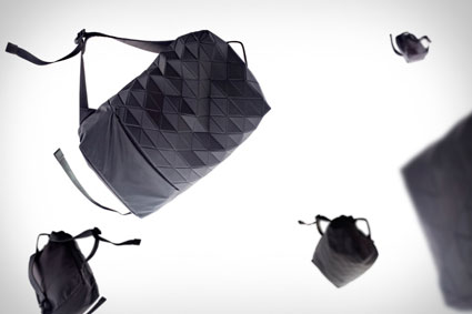 Com um design ultra-moderno, mas discretas esta linha combina múltiplos triângulos por forma a conseguir que as formas tradicionais das malas e das mochilas de sempre se tornem em autênticos objectos que fundem arte e moda.