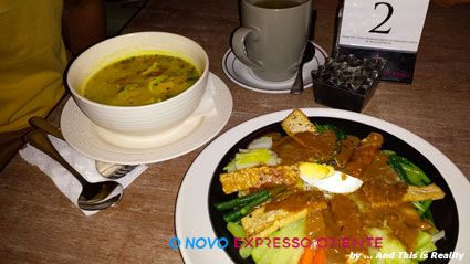 Este restaurante é uma pequena cabana, com uma decoração, música e ambiente bastante loung, situada numa estreita e muito secundária estrada, que atravessa uma imensidão de campos de arroz por detrás do edifícios das estradas principais. Foi o cenário perfeito para o nosso final de dia relaxante e místico que tivemos.