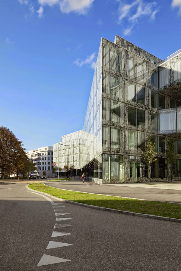 Situada e Zurique, esta incrível obra de arquitetura da autoria do atelier holandês WAA, tem como principal elemento caracterizador a utilização do mármore branco e de cortinas de tecido nas suas fachadas. Estes dois elementos criam uma dinâmica de texturas em toda a forma (bastante monolítica) interessante e magnética.