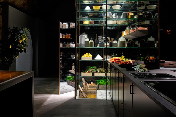 A última tecnologia para guardar e conservar os alimentos alia-se aos melhores materiais, como pedra natural, detalhes em bronze e placas de cerâmica. Alguns detalhes incluem materiais que passam do opaco ao transparente permitindo saber rapidamente onde tudo se encontra.