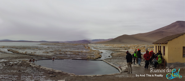 No meio do deserto, fruto de manifestações vulcânicas, surgem duas piscinas de água quente e borbulhante, onde se pode tomar banho e aproveitar para aquecer do frio de graus negativos que se faz sentir. O cenário é único, a paisagem é desoladoramente bela só é pena que alguns de nós não estejam em condições para tomar este banho ... porque se assim não fosse, todos tínhamos trazido o fato de banho para tal aventura.