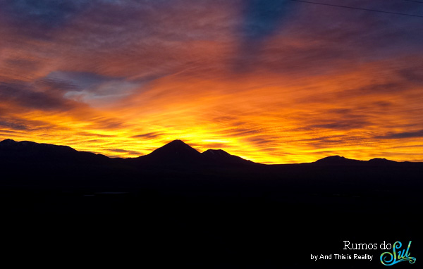 Ainda era noite quando chegamos ao posto fronteiriço do Chile com a fronteira da Bolívia, e foi aqui que vimos um nascer do sol absolutamente inacreditável. Depois de esperarmos pela abertura do posto fronteiriço, e depois de fazermos todos os trâmites fronteiriços, onde os guardas nos perguntam apenas o nome, mas olham-nos com um ar desconfiado, seguimos caminho para o nosso programa do dia: atravessar o Deserto D'Atacama.