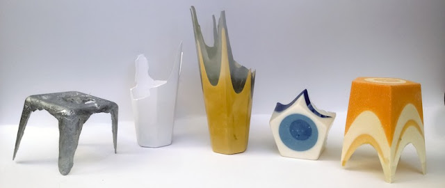 Os primeiros produtos produzidos através deste processo, foi uma série de bancos feitos de polímeros de resina que destaca as capacidade da técnica, assim como combina diferentes materiais (madeia e metal) durante o processo de moldagem, tendo como produto final uma peça repleta de cores, que combina materiais duros e moles. Todos estes bancos foram fabricados através de um único molde reutilizável.