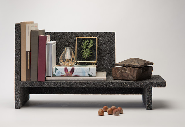 O estúdio mexicano Peca Studio criou uma seleção de versáteis acessórios artesanais para a casa, incluindo organizadores de mármore e placas vulcânicas. O seu projeto "Lava Shelves" é uma extensão da sua experiência anterior com a rock Molton, que trabalha numa série de peças de mobiliário adaptáveis.
