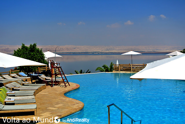 Mas depois de tomarmos um banho no Mar Morto, de nos barrarmos com as lamas, de as lavarmos novamente, tomamos duche para tirar o sal, ainda damos um mergulho numa das piscinas do resort (escolhemos a infinity pool para o Mar Morto). Foi uma manhã em grande estilo ... mas agora está na hora de seguirmos viagem, por isso tomamos duche num dos balneários do resort, e voltamos para os carros, para irmos para o Aeroporto.